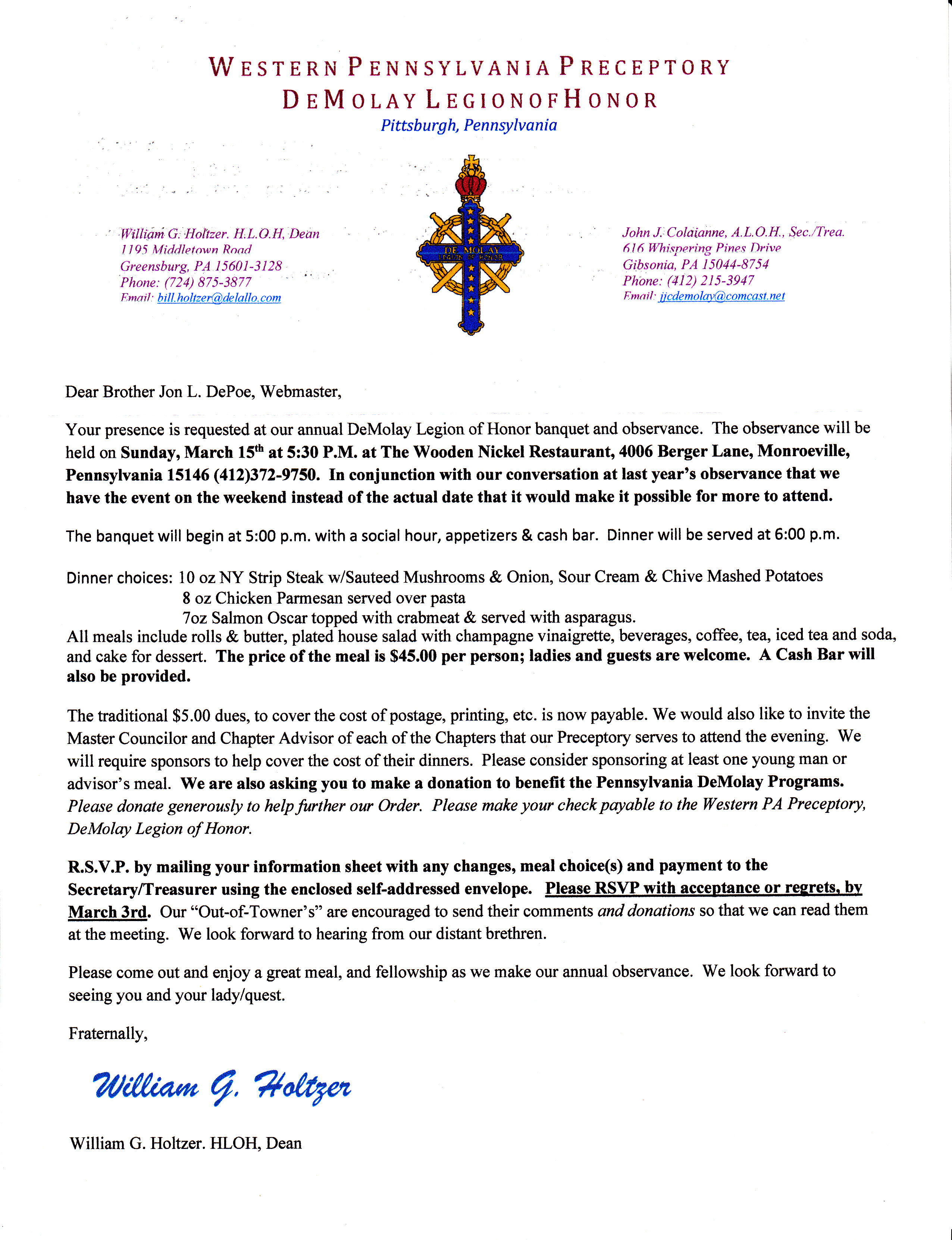 SCHEDULE OF PRECEPTORY EVENTS/ACTIVITIES/MEETINGS